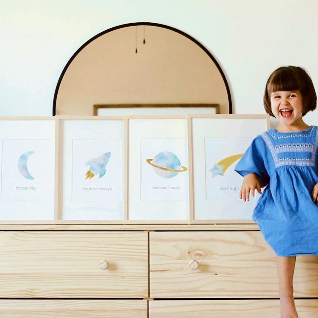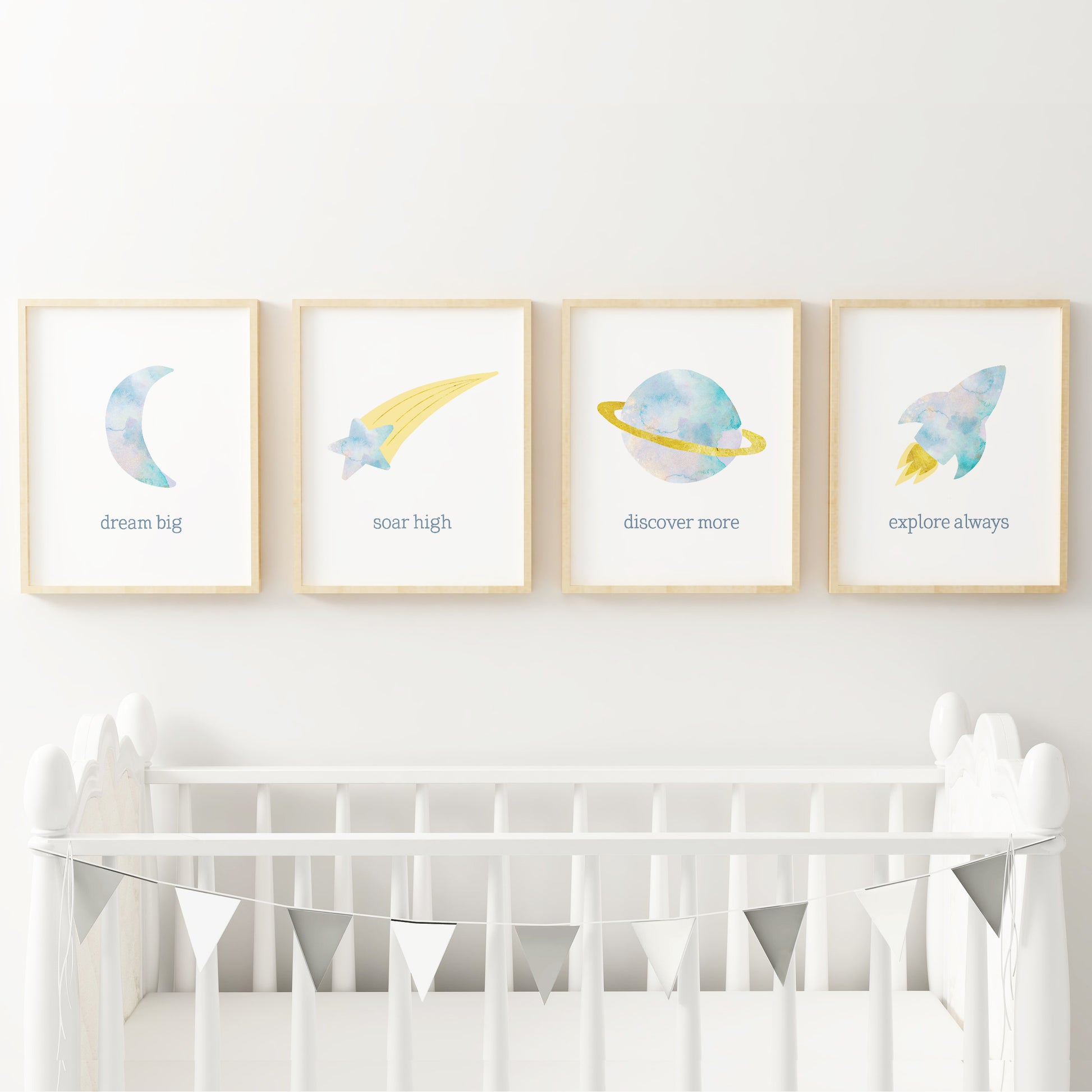 Can’t wait to decorate the nursery with these beautiful pieces of artwork. Perfect for a nursery with a space theme!