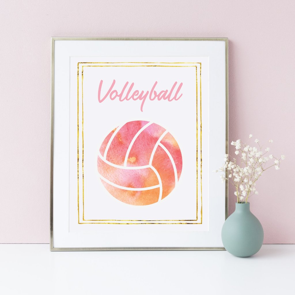 Empower your young athlete with this volleyball art print in gorgeous pink watercolor! It makes the perfect decor for a girl's room, school locker or sports theme birthday party.