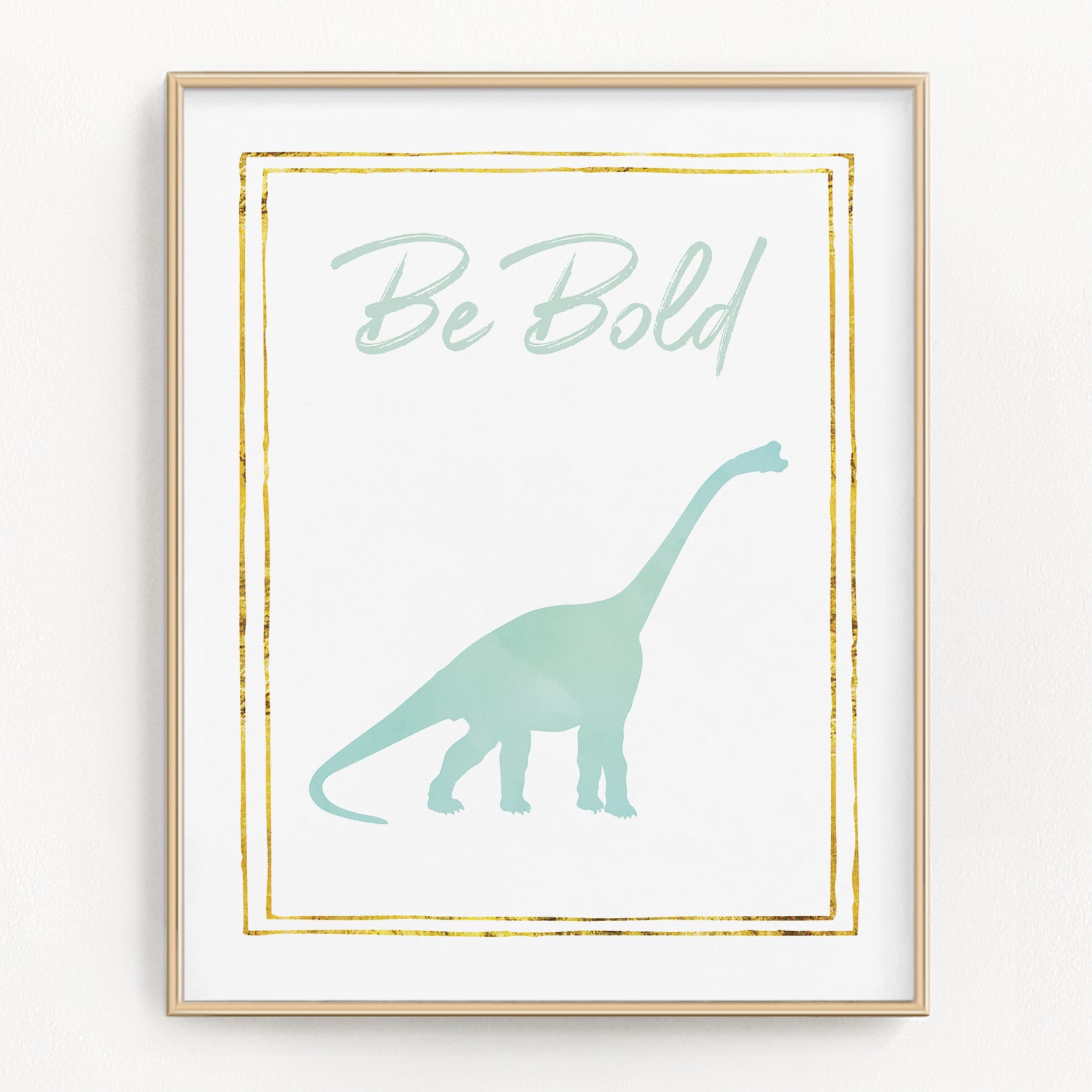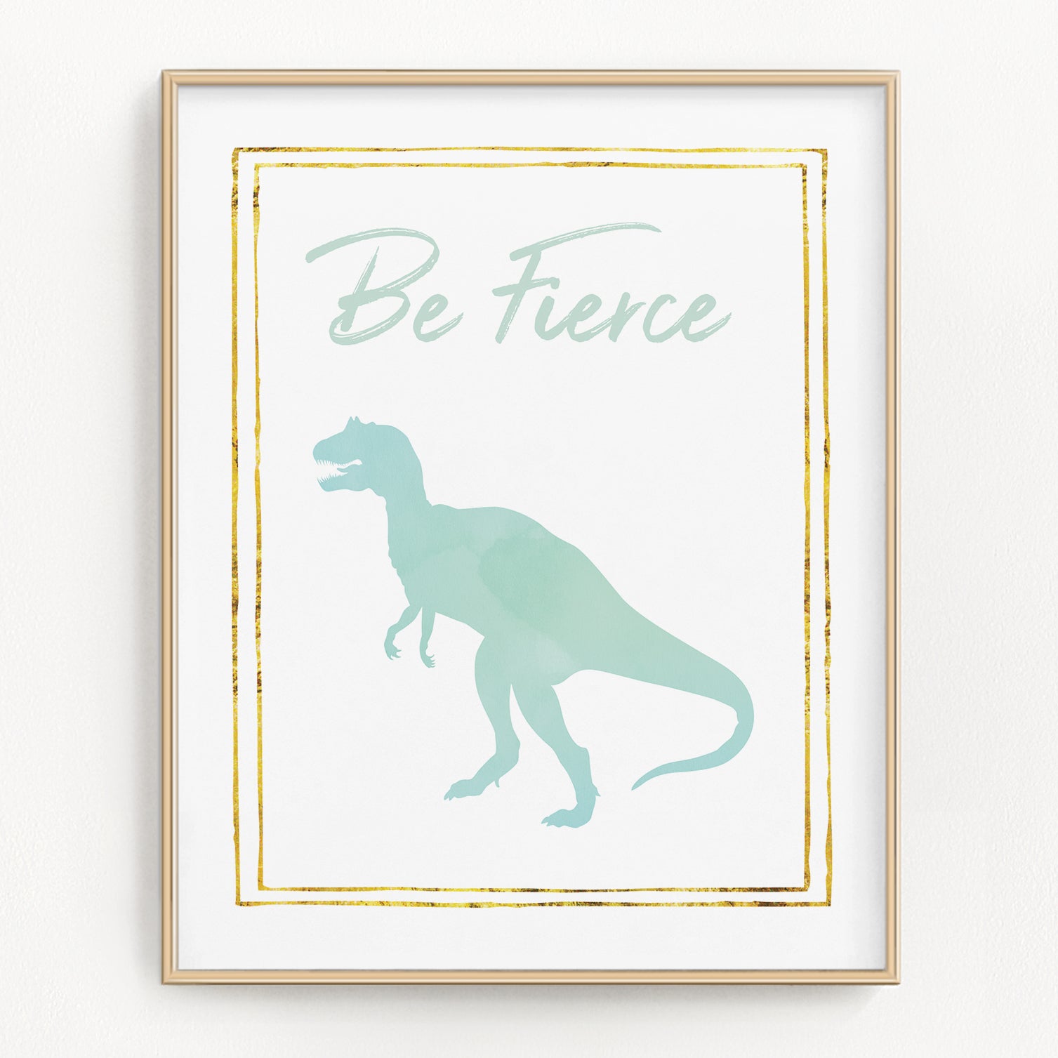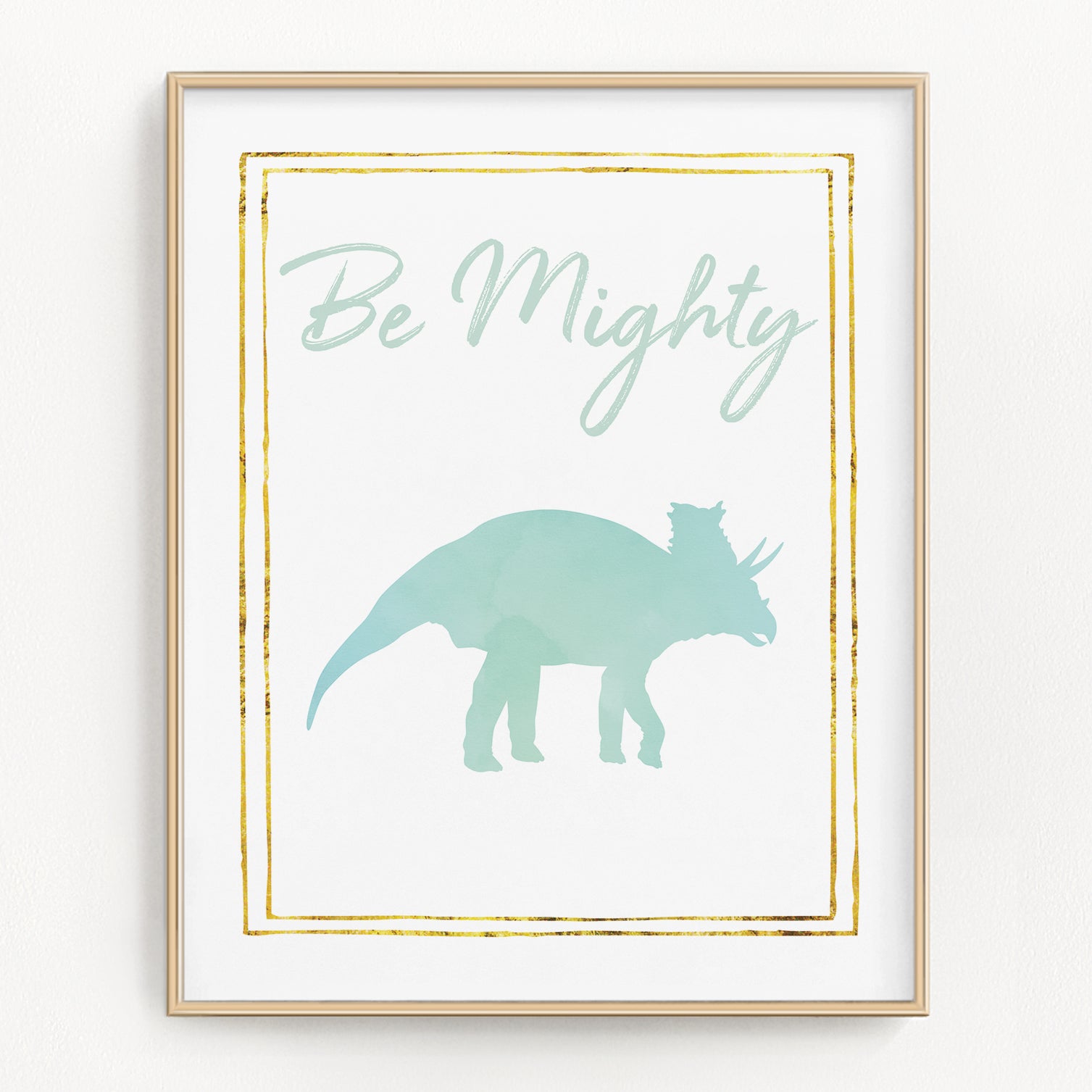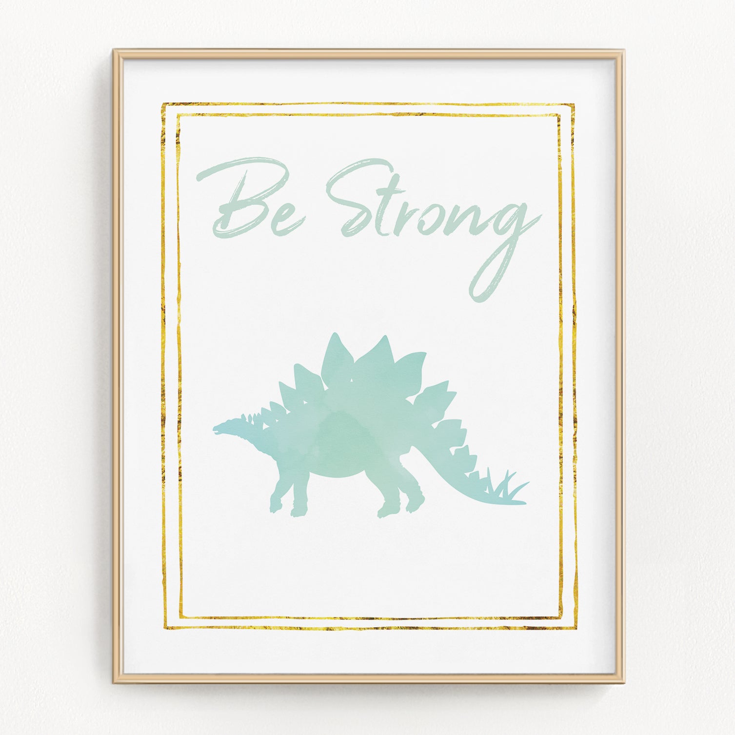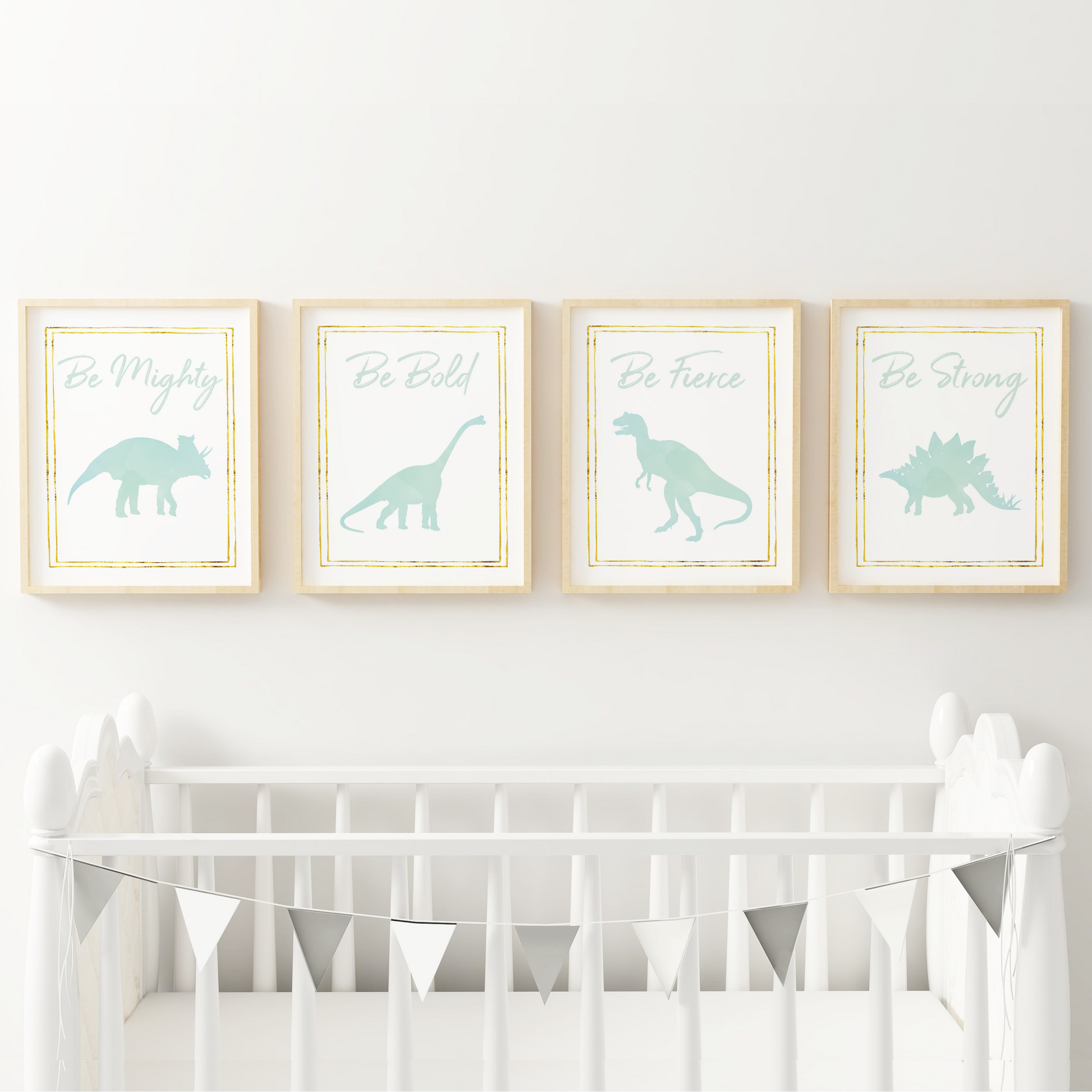 Your dinosaur nursery, kid’s room or playroom is complete with this set of four fun dinosaur prints. Available in 3 colors, this set features T-Rex, Brontosaurus, Stegosaurus and Triceratops prints, each with an inspiring message meant to empower your little one.